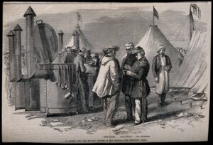 Although rapidly becoming ill after arriving at Scutari [24], Soyer quickly set to work with Florence Nightingale to improve the production and distribution of food to patients at the military hospitals [25]. Like her, he struggled to overcome problems with the Army’s appalling supply and distribution systems, and rigid bureaucracy, though this might have been a little easier for him, as he was acquainted with many of the senior soldiers and administrators, and as a man could easily join their social circle. He was gradually able to implement more suitable menus and recipes, train permanent teams of kitchen staff, and get equipment repaired, so that hospital patients were provided with better quality food which was safer and more nutritious. Realising that tea was an essential support to morale as well as hydration, he also designed the “Scutari Teapot”, enabling regular provision of hot tea to hospital patients. Nightingale herself recognized this – “there is nothing yet discovered which is a substitute to the English patient for his cup of tea” [26]. When he felt confident that his reforms of the hospital kitchens would be sustained, he went to the battle fields to begin work there.