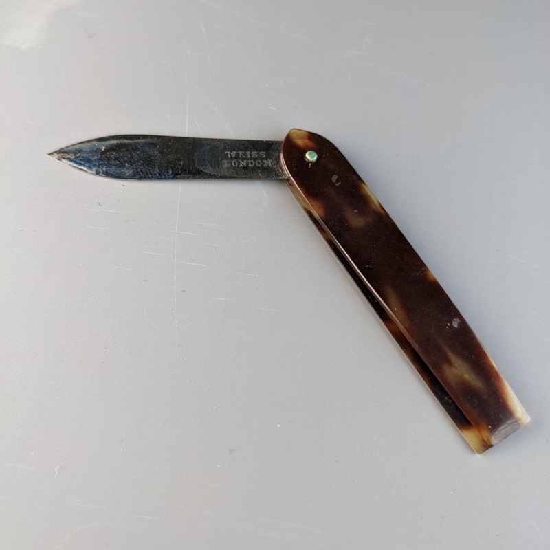 About this objectA lancet with a tortoise shell casing. Lancets are used to prick the skin to draw blood.
